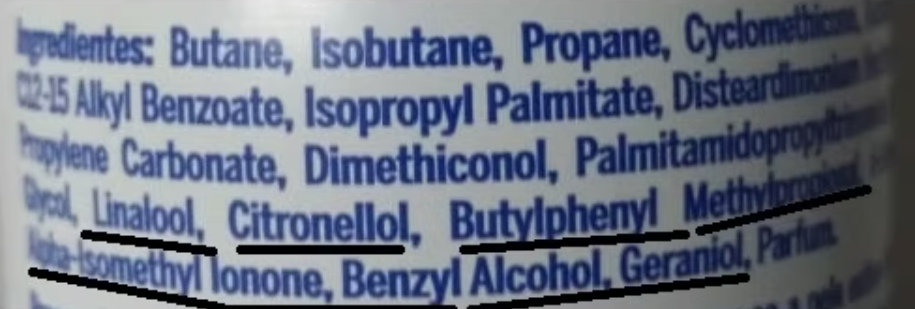 Já de origem sintética, o Butylphenyl Methylpropional é uma fragrância com odor floral fresca e o Alpha-Isomethylionona confere um odor floral doce.